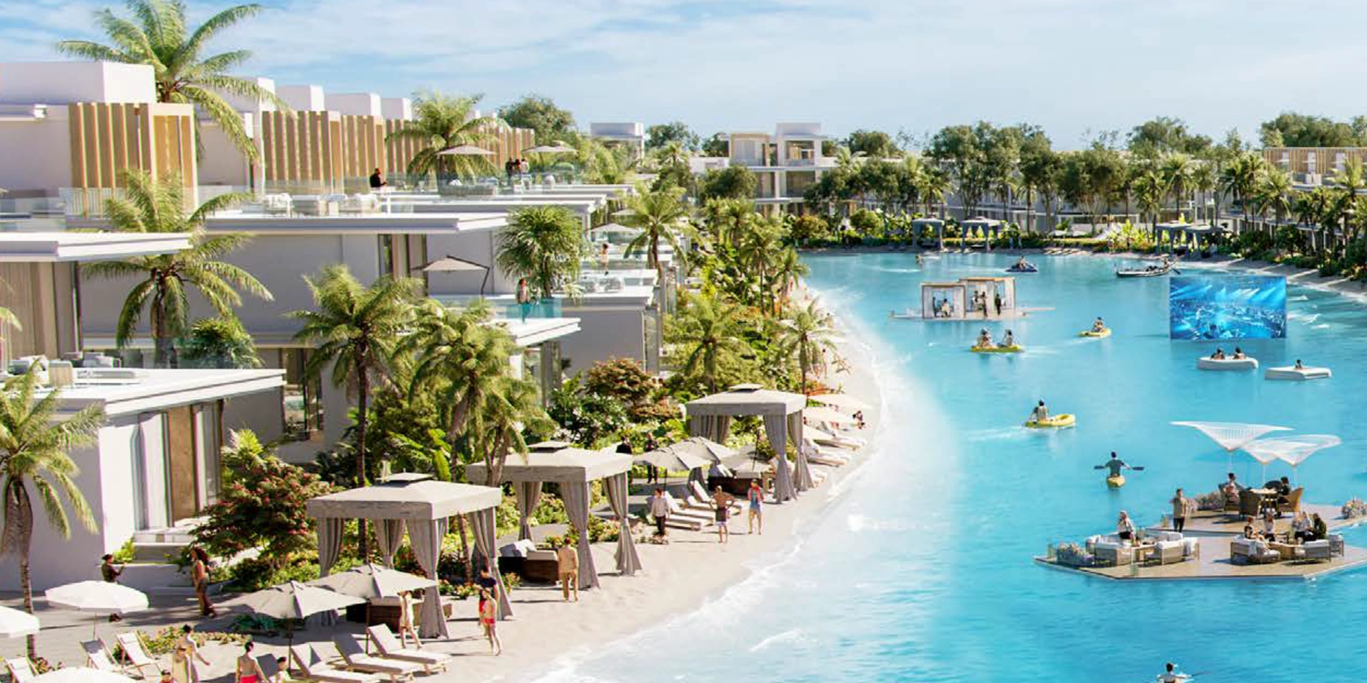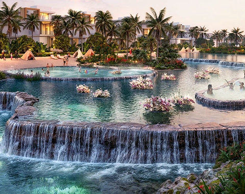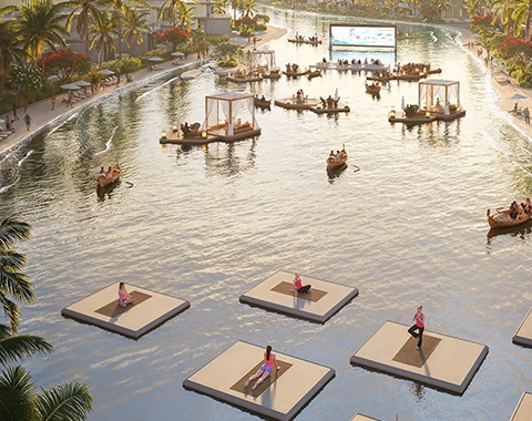 Resort-Style Amenities: Enjoy aqua parks, jungle-themed river rides, over-water floating cabanas, and world-class waterside dining.